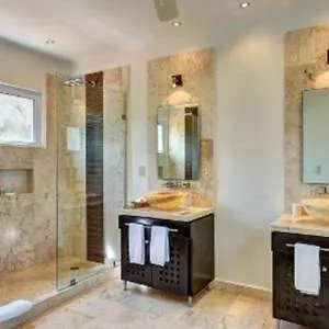 Uvnitř vily najdete pokoje s balkónem, detektory kouře a ovládáním klimatizace, i 6 koupelen s prostornou sprchou a samostatnou toaletou. Součástí nemovitosti je také 5 ložnic a kuchyně.